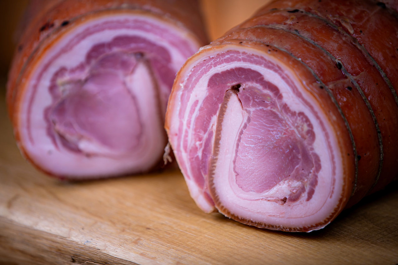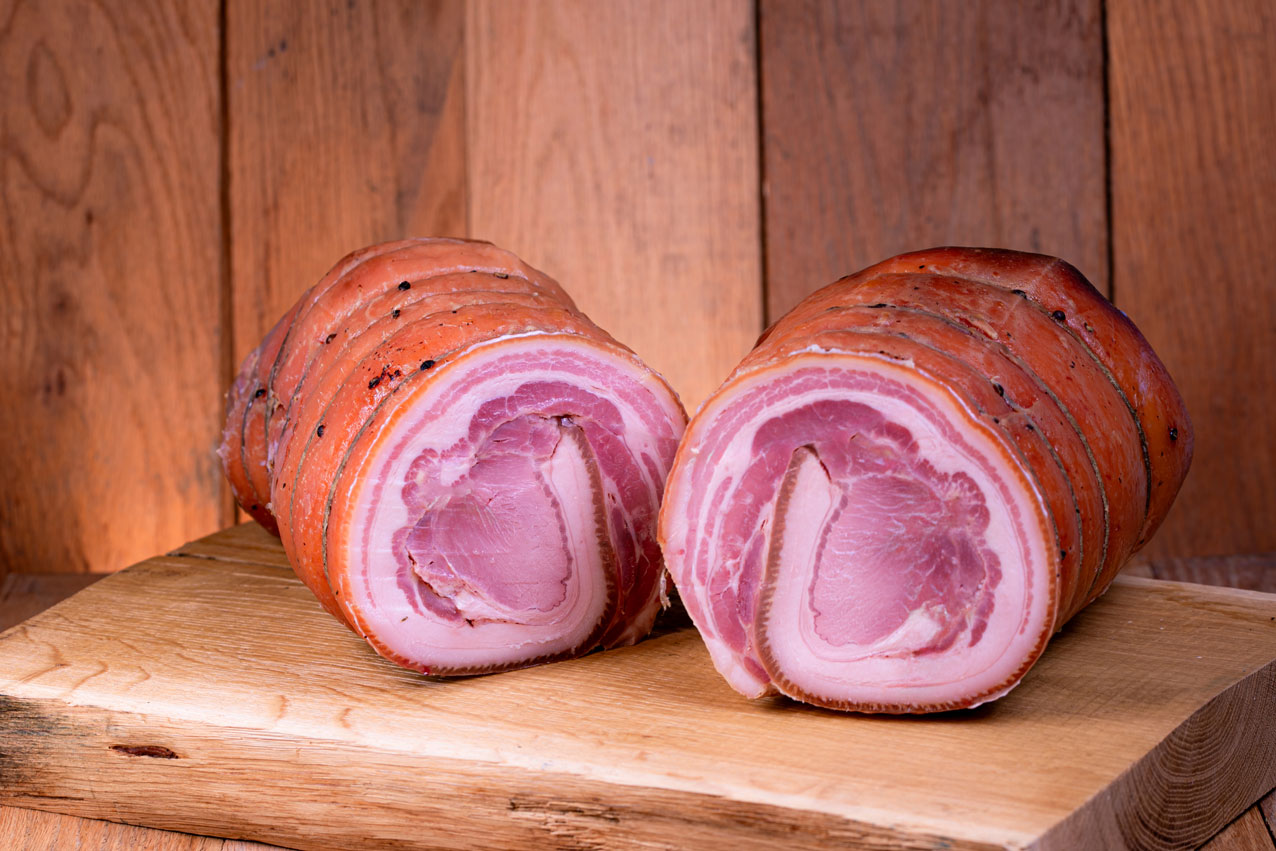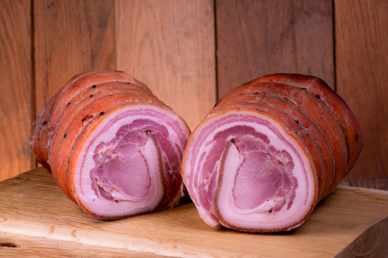 Il tutto sapientemente ripiegato e legato a mano per conferirle la classica forma a arrotolata, cotta lentamente in forno per circa otto ore a 190 gradi.